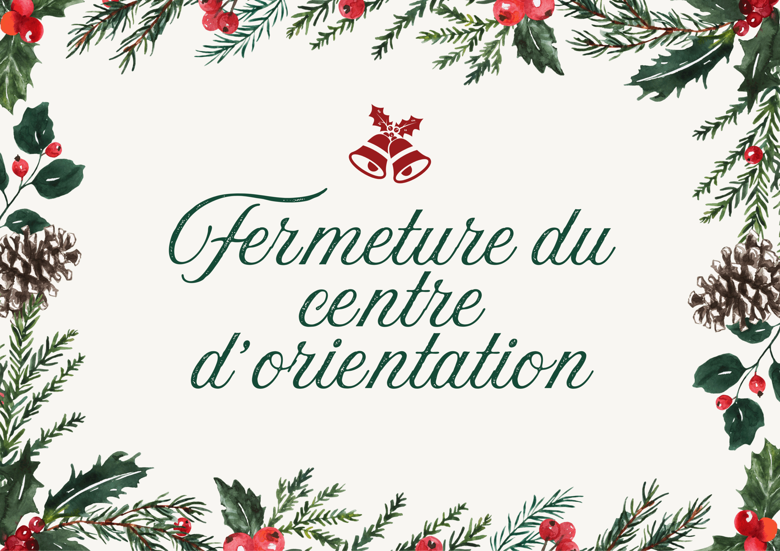 Le centre d’orientation sera fermé du 19 décembre 2025 au 5 janvier 2026.